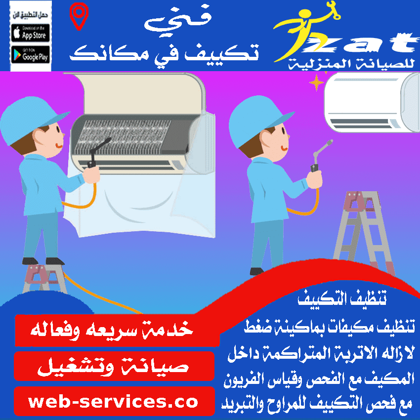 صيانة تكييف الاهتمام ب الصيانة الدورية للتكييف وتكون هذة الخدمة قبل بدء الصيف لتلاشي اعطال التكييف في اوقات الذروة في فصل الصيف الخدمة هي تنظيف التكييف للوحدتين الداخلية والخارجية