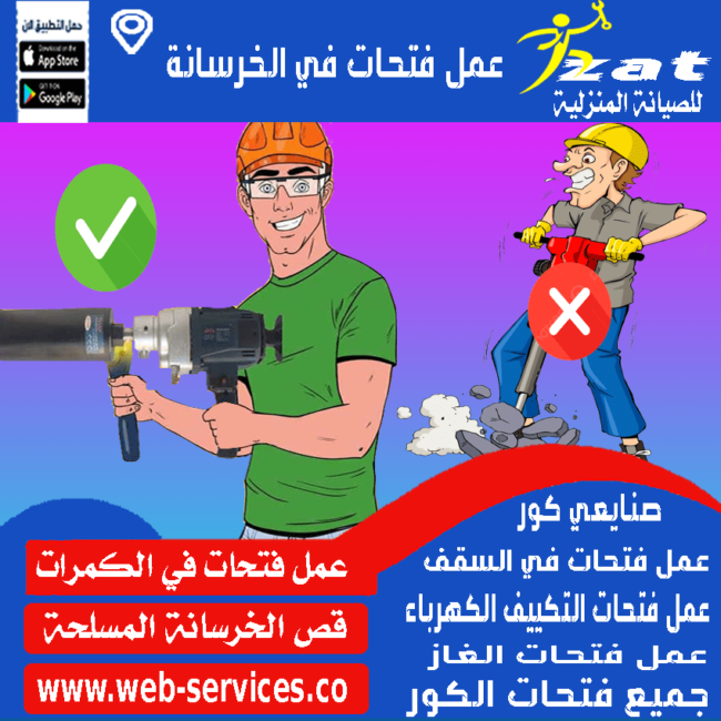 عمل فتحات في الكمرات بافضل صنايعي كور حيث يعمل جميع فتحات الكور في الجدار الخرسانى والرخام والسيراميك بالاضافة الي خدمات فتح مداخن الغاز و فتح تهوية السخان و عمل فتحة تكييف جميع اعمال فتحات الكور.
